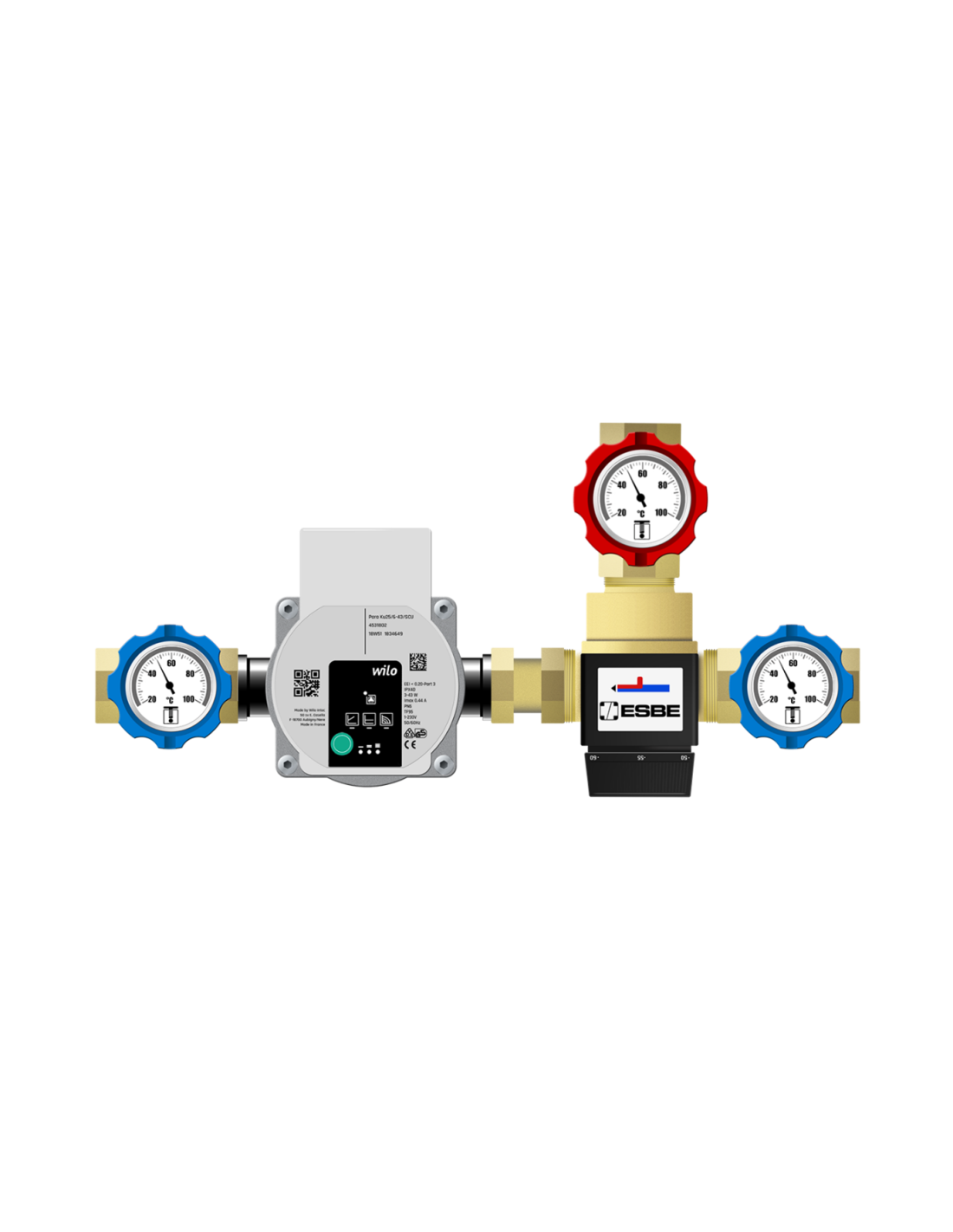 Grupa antykondensacyjna (ochrony powrotu) zwiększa sprawność i eliminuje zjawisko korozji niskotemperaturowej wnętrza urządzenia grzewczego, czyli wydłuża jego żywotność oraz zapewnia optymalną pracę układu. W układzie zastosowano zawór temperaturowy ESBE VTC312, który dzięki podmieszaniu z wodą zasilającą zapewnia ciągłość temperatury wracającej do kotła na poziomie 55° oraz wysokiej jakości pompę elektroniczną - do wyboru.
